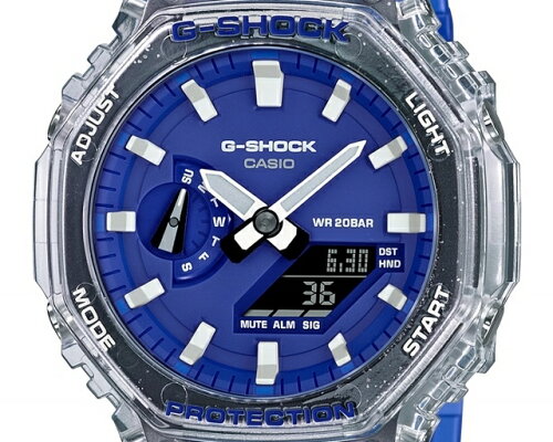新製品![正規品/送料無料]CASIO G-SHOCK/ジーショック HIDDEN COAST series メンズクオーツ カーボンコアガード オクタゴン/八角形 アナデジ 反転液晶 20気圧防水 クリア ブルー×ホワイト GA-2100HC-2AJF