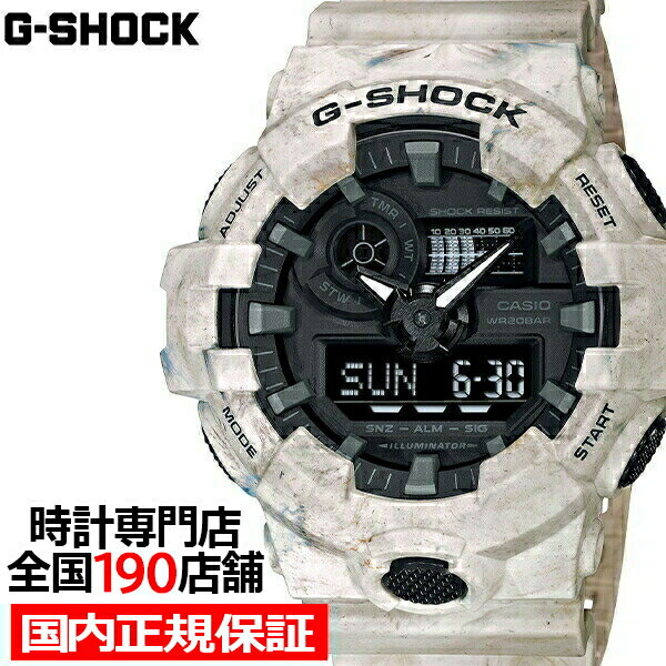 デジタルとアナログのコンビで人気のGA-700WMは大型のベゼルで武骨な力強いデザインに。