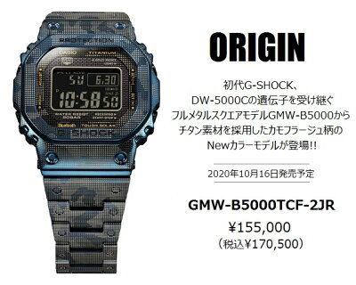 ブラック◆GMW-B5000TCM-1JR◆CASIO G-SHOCK スクエア フルメタメタルカモフラージュ GMW-B5000TCF-2JR 品番 GMW-B5000TCF-2JR[Cal:3459]【正規品】メーカー保証:1年 ※バンドサイズ調整無料!!(コマ追加は有料) ●1983年の誕生以来、絶対精度とあくなきタフネスを追求し、独創のテクノロジーで進化を続けてきた[CASIO G-SHOCK]から、初代G-SHOCK、DW-5000Cの遺伝子を受け継ぐフルメタルスクエアモデルのGMW-B5000から、カモフラージュ柄のNewカラーモデルが登場!! ●今回は、GMW-B5000TBをベースにケース・ベゼル・バンド・バックすべてにチタン素材を採用し、ブルーIPとレーザー彫刻を活用した特殊な仕上げにより、メタル素材でありながら独特のブルーカモフラージュ柄を表現☆