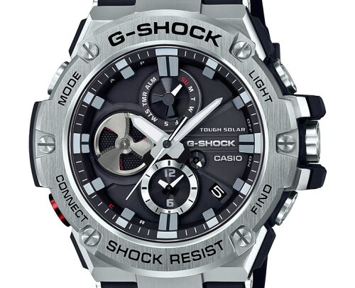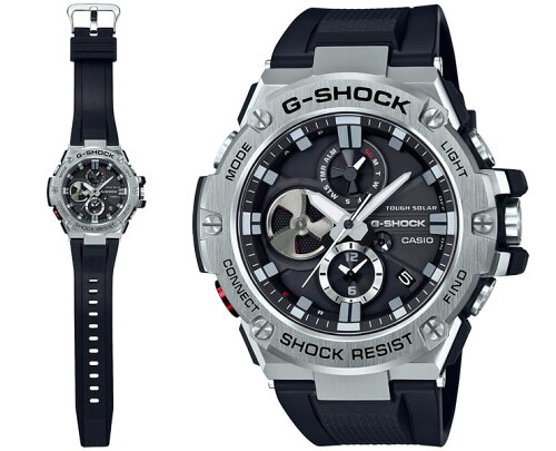 正規品 G-SHOCK ソーラー スマートフォンリンク G-STEEL GST-B100-1AJF CASIO Gショック Bluetooth モバイルリンク機能 アナログクロノグラフ ウレタンバンド ブラック&シルバー 黒 銀 秒針付き メンズ 腕時計 八村塁 着用モデル (GSTB1001AJF)【あす楽】