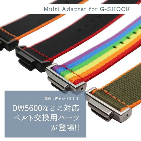 G-SHOCK ベルト交換 カスタム CASIO 腕時計 マルチアダプター メタル 2個セット ブラック シルバー クロスバンド レザーバンドにも G-SHOCK対応 ベルト交換用カスタムパーツ DW-5600シリーズなどに対応のベルト交換用カスタムパーツが登場!! 周りが持っていない商品を身に着け、周囲に差をつける!! G-SHOCKのベルトを引き通し系ベルトに交換して装着する際に必要なアダプターです。