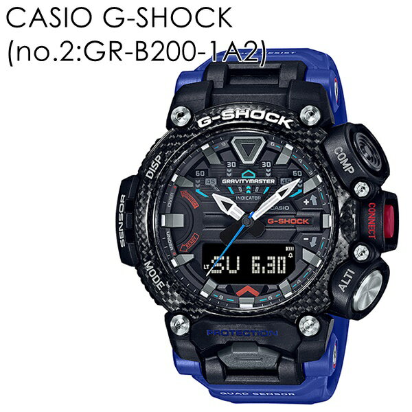 ■ブランド:CASIO G-SHOCK(カシオ ジーショック) ■商品型番:(海外モデル) no.1:GR-B200-1A no.2:GR-B200-1A2 no.3:GR-B200-1A9 ■クオーツ(電池式) ■防水性:20気圧防水 ■機能: ・耐衝撃構造(ショックレジスト) ・無機ガラス(表面形状:球面・曲面) ・ネオブライト ・耐振動構造 ・ケース・ベゼル材質: カーボン ・樹脂バンド ・モバイルリンク機能(対応携帯電話とのBluetooth通信による機能連動) ・針退避機能(針が液晶表示と重なって見づらいときは、針を液晶表示の上から一時的に退避させることができます) ・方位計測機能:16方位・方位の角度(0〜359°)を計測、方位連続計測(60秒)、北方位指針機能、磁気偏角補正機能、方位補正機能(2点補正/8の字補正/自動補正) ・気圧計測機能(計測範囲:260〜1,100hPa)、気圧傾向グラフ(過去20時間または56時間分を表示)、気圧差インジケーター(±10hPa)、気圧傾向インフォメーションアラーム(特徴的な気圧の変化が起こった場合に矢印と報音でお知らせします)※気圧傾向グラフは過去20分または56分の表示に変更することができます。
